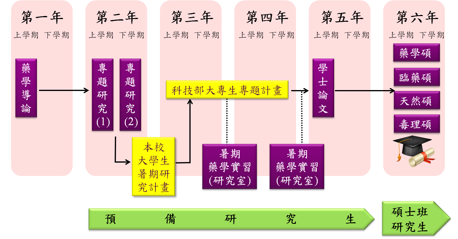 - 配合108學年度 五年制藥學教育,積極推動大學部學生5+1之課程